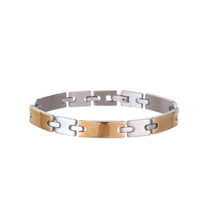 Bracelet Rialto acier doré or : Bracelet acier avec un système de mise à taille par suppression de maillons à réaliser avec une pointe fine ou le mini-étau réf 6989. Idéal pour apporter de la brillance à vos tenues.